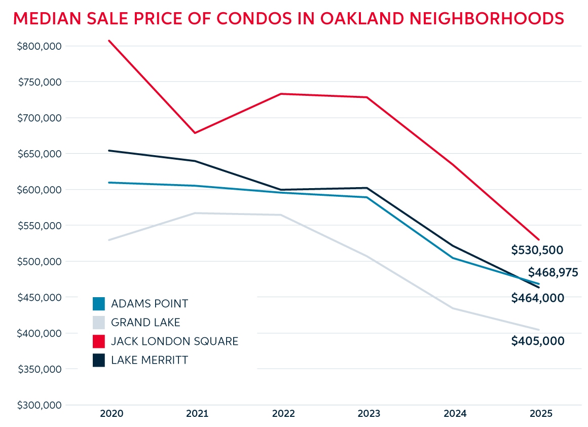 The condominium sector presented a particular opportunity: condo prices reached their lowest point in five years, offering attractive entry points for buyers despite their challenges with insurance, rising HOA fees and new point of sale requirements. Condo performance diverged notably from single-family homes in Q3 2025. Median prices for Inner East Bay condos dropped 25% from early 2022 peaks, reaching their lowest levels since 2016. For the first time in several years we saw buyers gaining more leverage thanks to rising inventory, though competition persisted for move-in ready or architecturally distinctive homes. With rising supply and more selective demand, buyers currently hold the advantage, particularly in Oakland and Emeryville, where competitively priced opportunities abound.